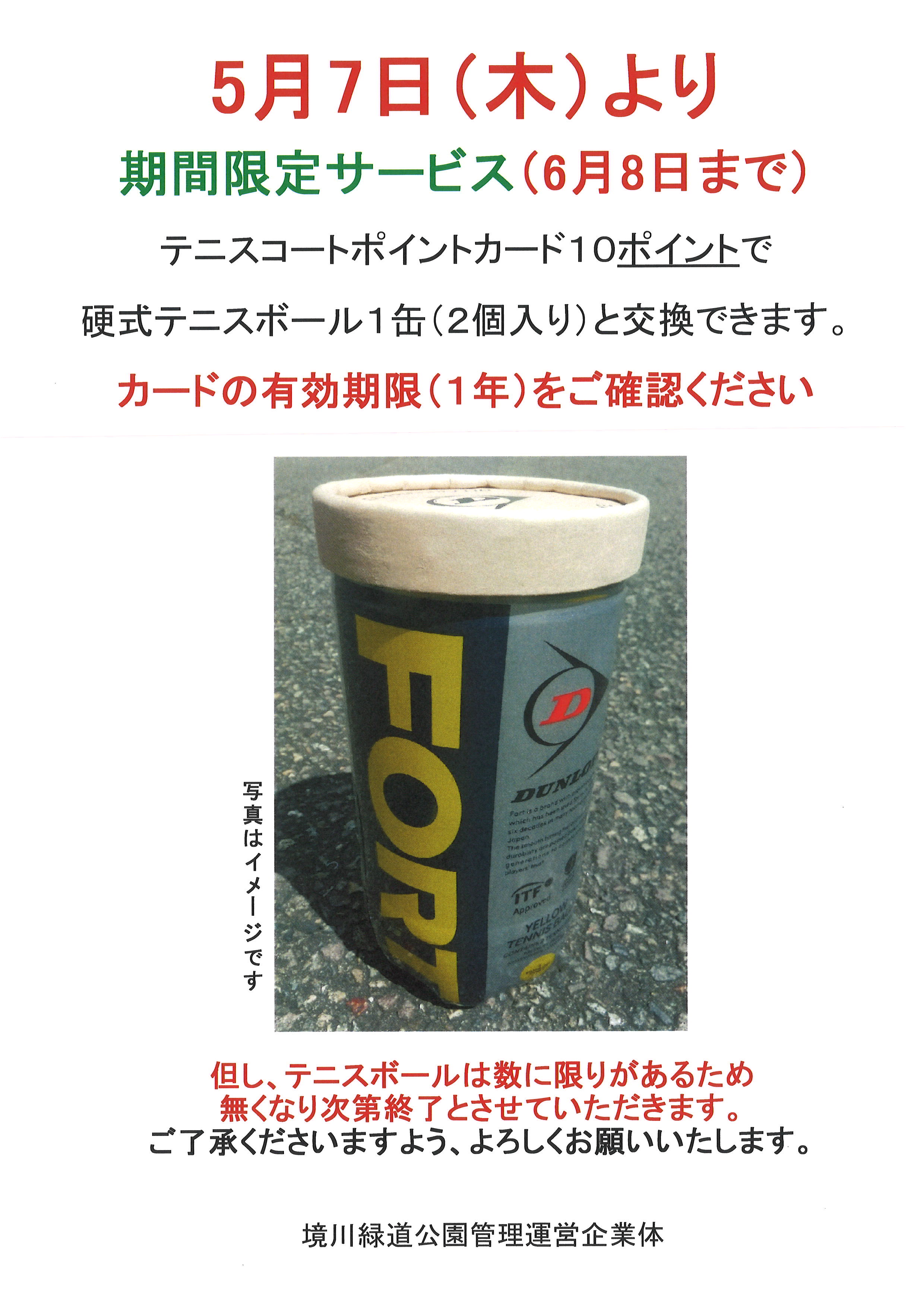 境川緑道公園テニスコートポイントカード交換のお知らせ🎾