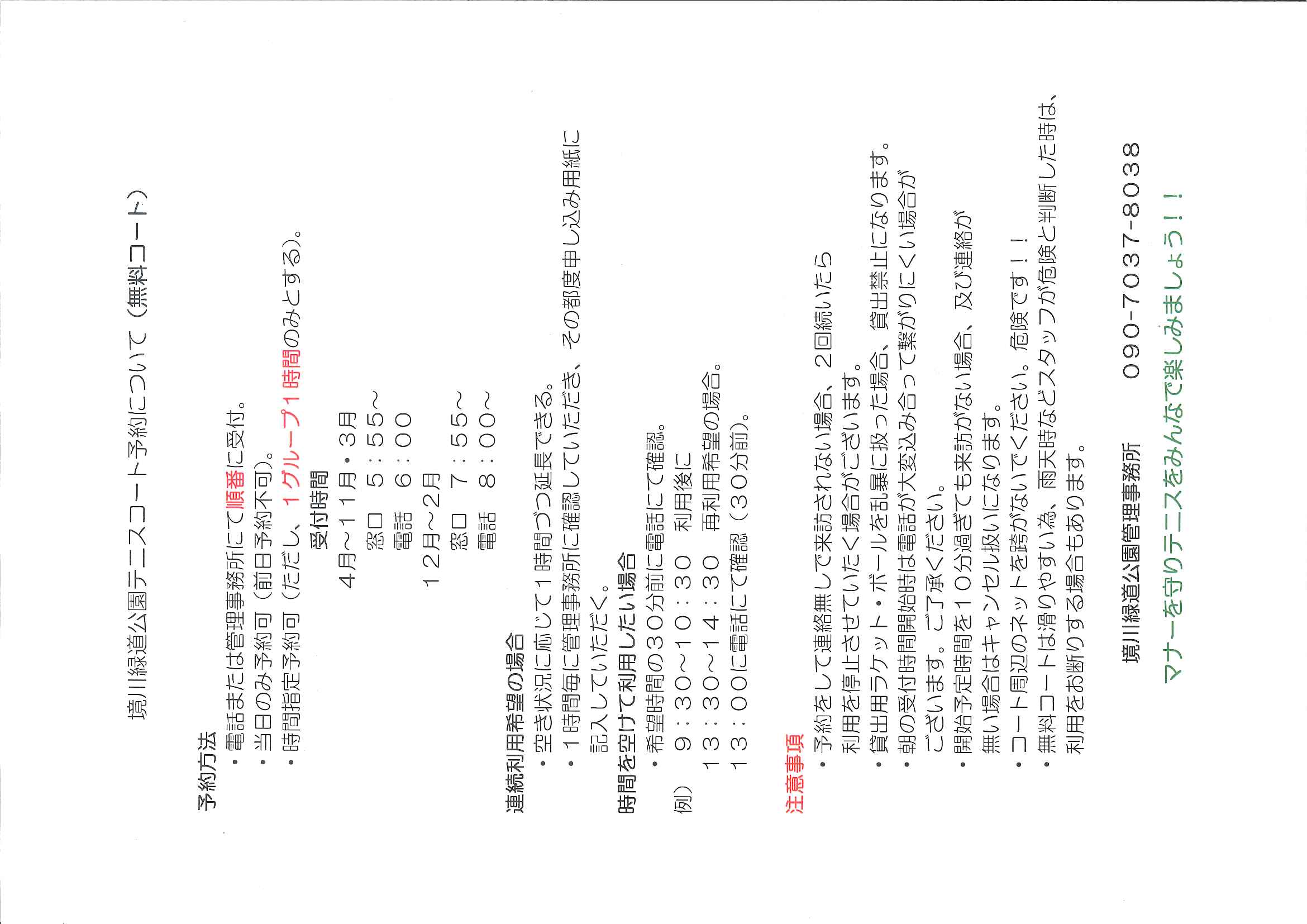 無料テニスコートネットの所に貼ってありますので